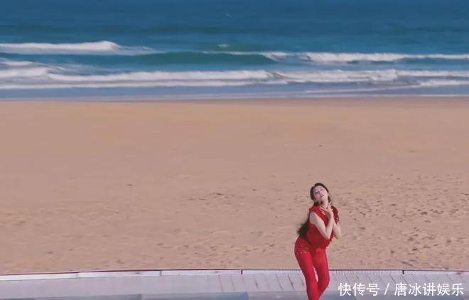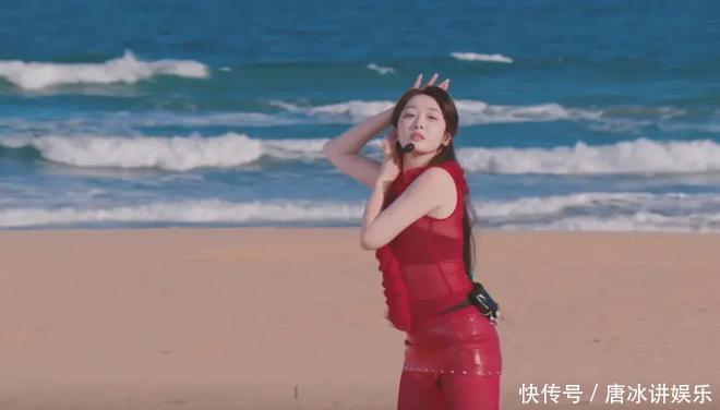 然而,画风突变,就在观众还沉浸在她营造的古典氛围中时,镜头一转,她瞬间换上了风格迥异的红衣皮裤。