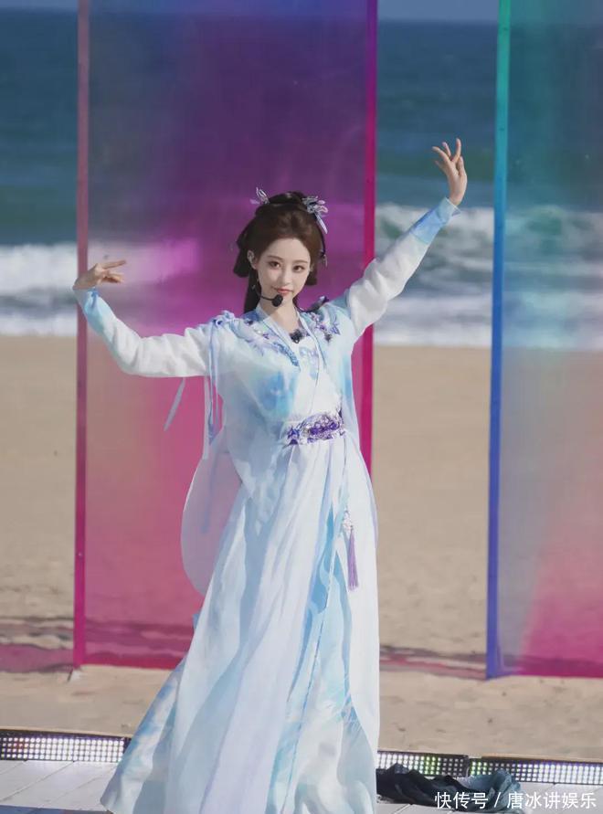 当时录制现场的海风特别大,给祝绪丹的彩排带来了很大的困难。
